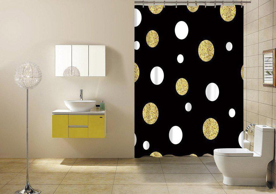 Pořiďte si svůj **Černý sprchový závěs se třpytivými puntíky** ještě dnes!