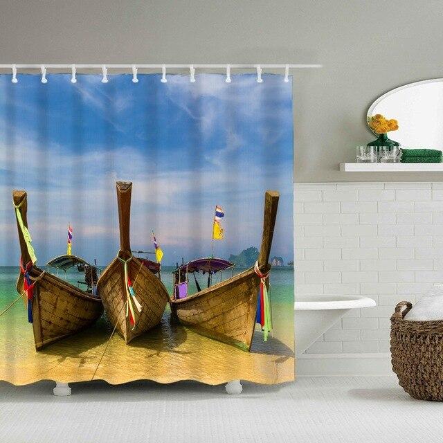 Proměňte svou koupelnu se Sprchovým závěsem s loďkami na pláži