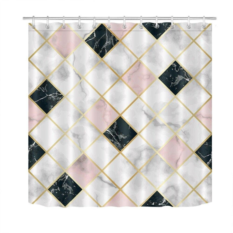Představte si koupelnu, která září stylem a elegancí. Náš Sprchový závěs se vzorem dlaždic je přesně to, co potřebujete, abyste proměnili svůj běžný prostor v luxusní útočiště. Tento jedinečný design kombinuje krásu mramoru v odstínech čisté bílé, jemně růžové a elegantní černé, vše zvýrazněné lesklými zlatými liniemi. Vytváří tak sofistikovaný, geometrický vzor, který připomíná luxusní dlaždice a dodá vaší koupelně moderní a svěží vzhled. Zapomeňte na nudné závěsy a dopřejte si dotek přepychu, který potěší vaše smysly každé ráno.